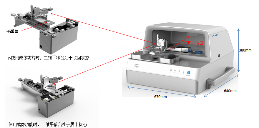 2、二維掃描平移臺可根據使用需要,控制居中或者收回,節省空間